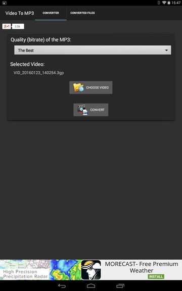 Video to MP3 by kkapps is another video to audio converter app for Android that adds a very interesting functionality into the mix. It doesn’t just let you create MP3 audio tracks out of videos. It also has a built-in cutter for trimming the video before converting it into MP3.