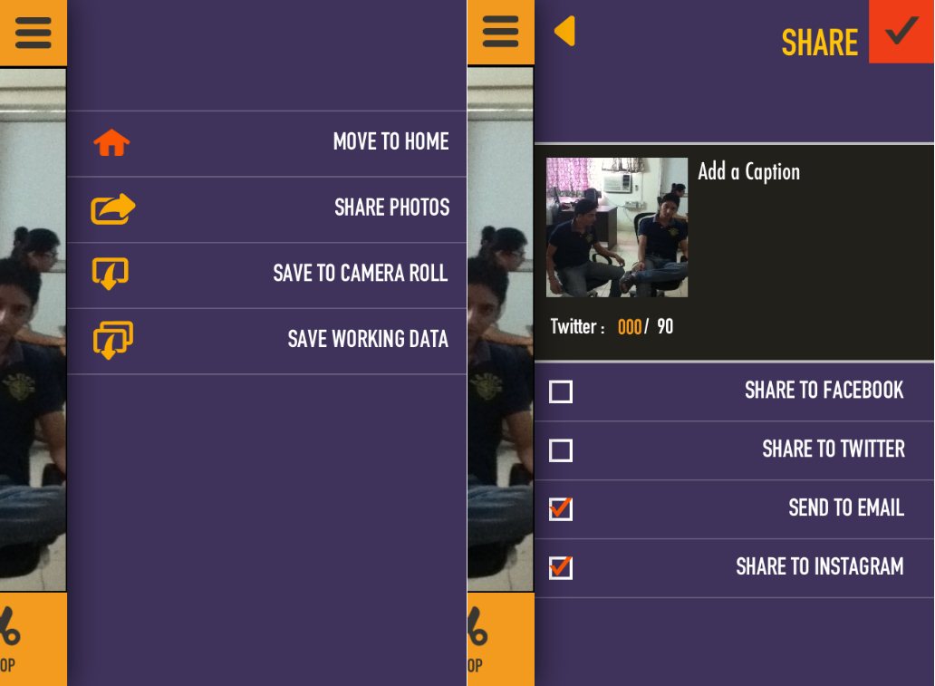 This app also allows you to share the clone photos to Instagram and Facebook. You can also save those photos to your camera roll. But to enable sharing you need to like its page on Facebook. You can also save your work which can be edited later-on and can be loaded from the Load Draft menu.