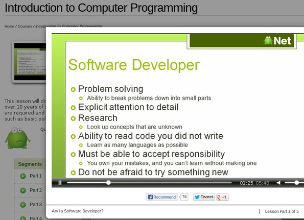 Here you’ll also be able to visit Google Play and iTunes App Store links for the app of the selected course, if it has an app of course. Click on one of the lessons from the list down below and it’ll open up in a pop-up window.