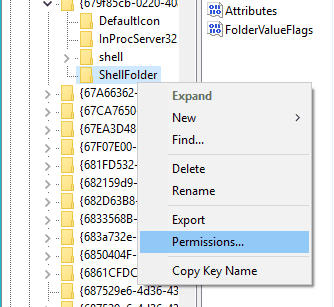 Step 3: We need to ‘change the permission of this key’. Right-click that folder and click Permissions… option.