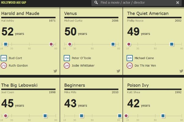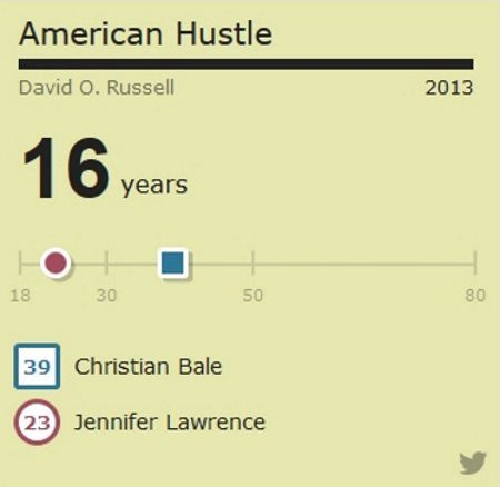 There is also a Twitter symbol in one corner of the box. You can use this to tweet about a particular movie and the age gap between its lead pair.