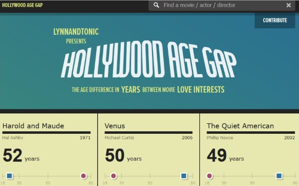 Hollywood Age Gap is a fun website to know what age difference was there between romantic leads in Hollywood movies. We often see actors on screen playing romantic characters and looking like they are made for each other. But we never think of what the real age difference is between these actors. If you find yourself wondering about the real age difference between romantic movie couples, then do throw a look at this website to find out.