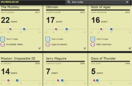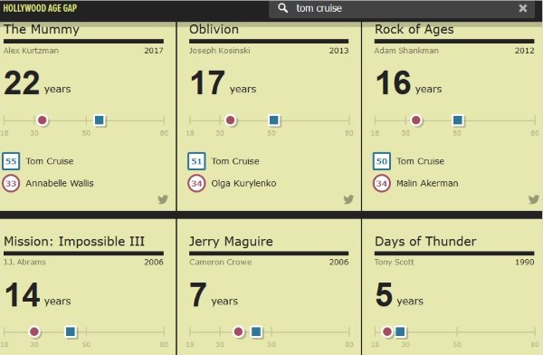 All the movies listed show the age gap Tom Cruise had with his lead actresses in those movies. Similarly, you can search using the name of the director, or the name of the movie also.