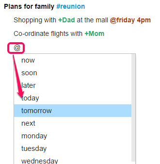 - Hotkey is supported to add date/time to a particular text. This is useful when you have to schedule events. Simply use ‘@’ and pop up will open to add required option.