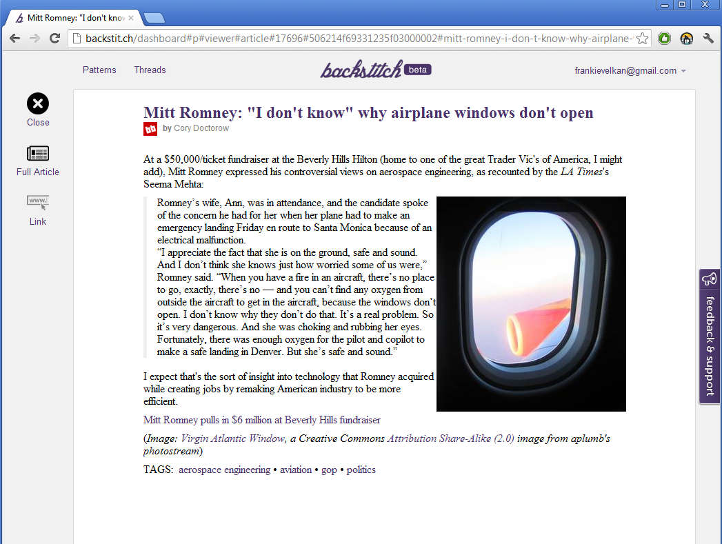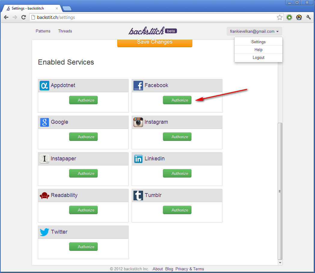 To actually receive updates from social networks and other places where you need to have an account, you first have to authorize and give Backstit.ch permission to access news feeds, tweet updates and so on. Open up Settings in the top right corner to do that. Once that the accounts are connected, the Backstit.ch news feed should receive updates from the selected social networks, news and shopping sites, and it’s also gonna allow you to read news: