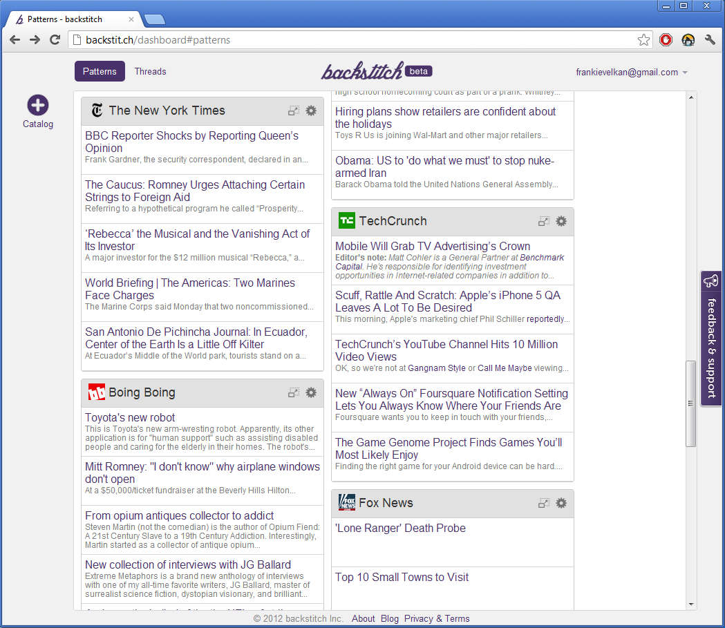 Keeping track of all the different news and happenings that go on in the world in not an easy task. There are a lot of interesting websites out there, and to read them you’ll need to open and browse each one of them separately, which takes time. With Backstit.ch you can combine, manage and read popular social networks, news sites and shopping sites from one place, in a single window.