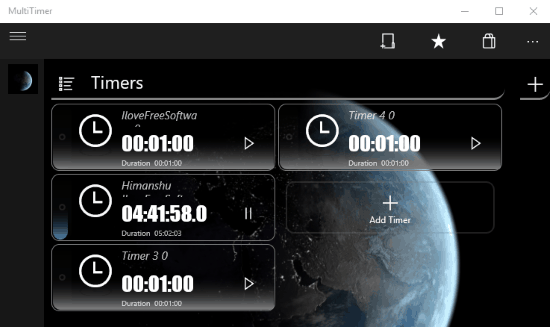 MultiTimer is a free Windows 10 multi timer app to set multiple timers at once. You can add any number of timers and make them count at the same time. It lets you set a timer in days-hours-minutes-seconds format. There is no doubt that this app is one of the most advanced multi timer app for Windows, as compared to the other apps on my list. You can run multiple timers and group them in a category. It also lets you set timers that are automatically triggered after the previous timer runs out of time. In addition to this, you can set different names and notification sounds for different timers.