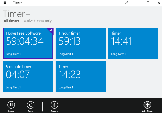 In this article, I will introduce you to 5 free Windows 10 multi timer apps. With these multi timer Windows apps, you can set multiple timers for different tasks. Once a timer goes off, you will be alerted by a desktop notification plus a sound. Best of all, these multiple timers remain active even if you close these apps or restart your PC. Some of the Windows 10 apps on my list even display the count of active timers on the Windows Taskbar. Apart from that, you can also add multiple timers into multiple groups. This will allow you to categorize timers for similar tasks together or create multiple interval timers of a task.