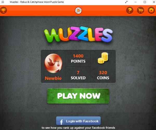 You can also login using your Facebook ID, to see how your friends are doing in this game and compete against them. In the center of the screen you are shown the number of coins your have, points you have, the number of puzzles you have solved, and your player status. When you start this game for the first time you will be given 200 free coins to play with. Everyday that you come back to play in the app you will get additional 50 coins everyday. To start playing click the play now button.