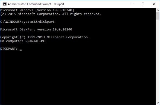 Step 2: In the command prompt window that opens up, type diskpart and press Enter.