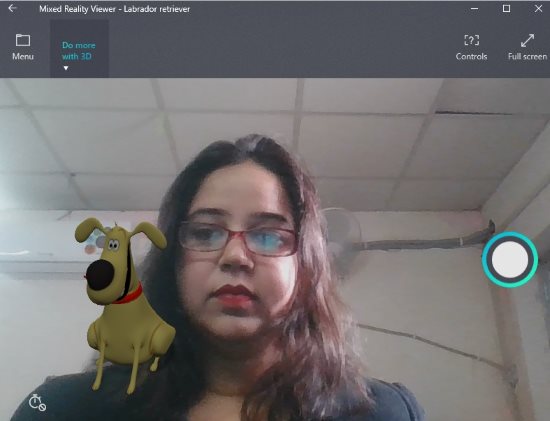 This option will turn on the webcam of your device and then will offer you an option to place the object you selected anywhere. You can take creative photos placing the 3D object anywhere. You can rotate the object, change its direction, and place it anywhere around you. Now you can click a photo through your webcam and the object in the photo will be captured along as can be seen in the screenshot above.