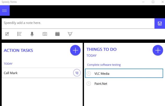 When you start the app you will see an interface like the one seen in the screenshot above. Just click the plus icon to add new tasks, or to do list. For adding a speed note just add the note in the search box at the top of the app and click the save button to save the note.