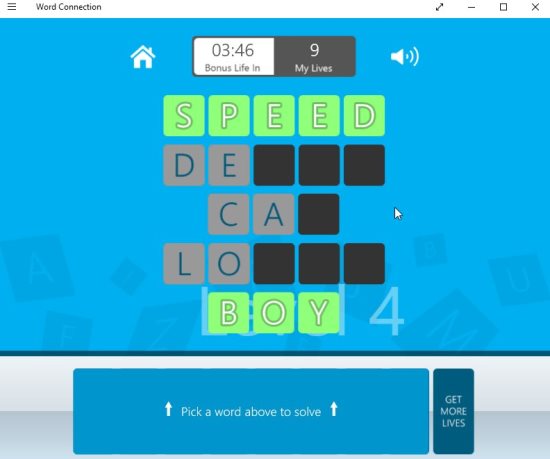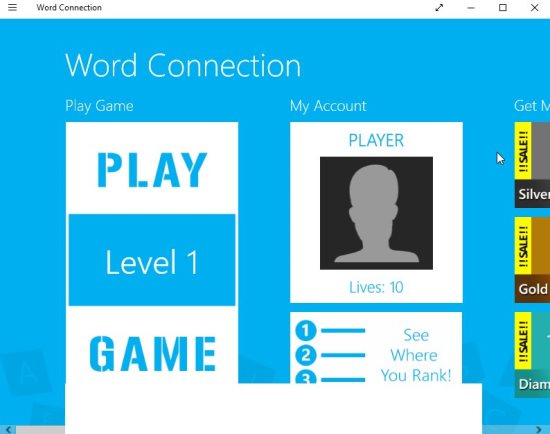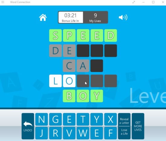 Word Connection is a free Windows 10 word puzzle game app. This word puzzle game app gives you the first and last word of the puzzle for free. Your goal is to figure out the words that connect the two words given by guessing the words in between them. The game has more than 400 levels to play. You have to clear a level to start with the new level.