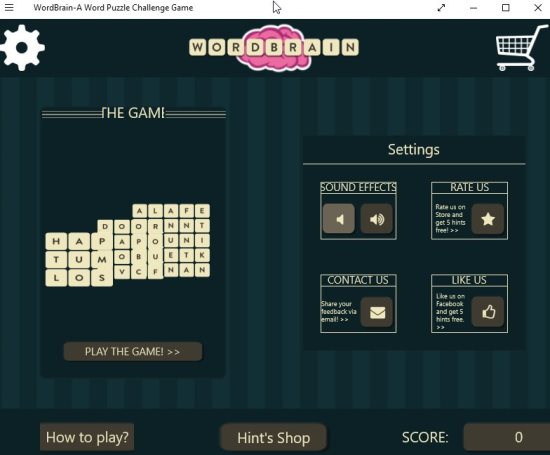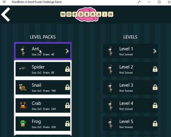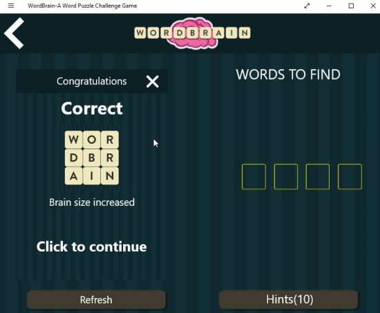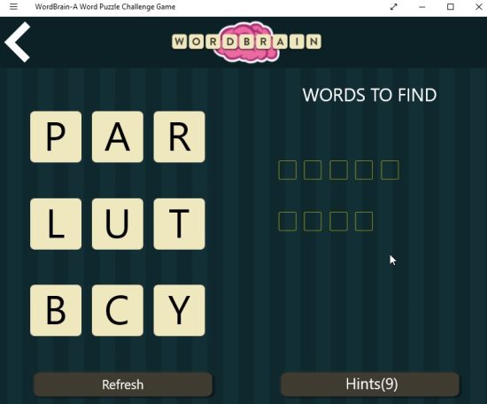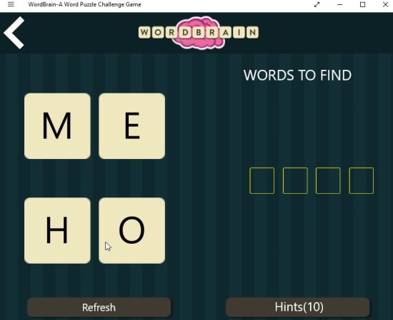 WordBrain is a free Windows 10 word puzzle game app which is fun and educational at the same time. The app offers you different levels of difficulty and also provides hints to help you out when you are stuck. The word puzzle game app can be played by anyone be it children or adults. But I think its more suited for children who can learn and improve their vocabulary playing this game.