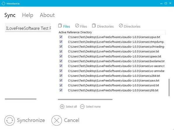 MetroBackup is a free file synchronization software for Windows which you can use to sync files between two directories. Three types of syncs are available, with source file deletion, without deleting files from source directory and bi-directional sync, where files are synced both ways, from source to target and from target to the source directory (if any new files are found).