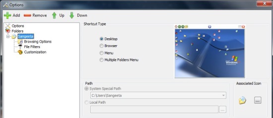 This is how QucikWayToFolders works. However, it also provides some additional functionalities which are worth mentioning here. Like the application can be run in single user or multiple user configurations, gives you the ability to create multiple desktops, and so on. Now let me summarize the key features of this free app for your quick reference.