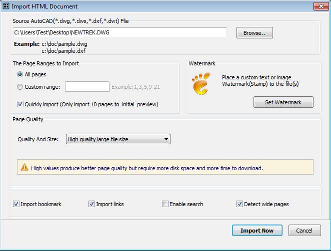 Notice that the interface mentions HTML, that’s probably because Flip AutoCAD was created from a very similar application from the same developer which can do the same thing, create flipbooks, but from HTML. There were some shoddy adjustments to the interface but you can still select the AutoCAD just fine by clicking on Browse.