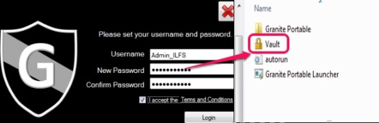 Granite Portable is a handy software that is used to password protect folders and files with the help of a vault. In simple means, Granite Portable provides a folder known as ‘Vault’ for which you can set a username and password, and add confidential files or folders to it. To get back added files, you need to enter same username and password. Thus, it ensures security and is reliable to use.