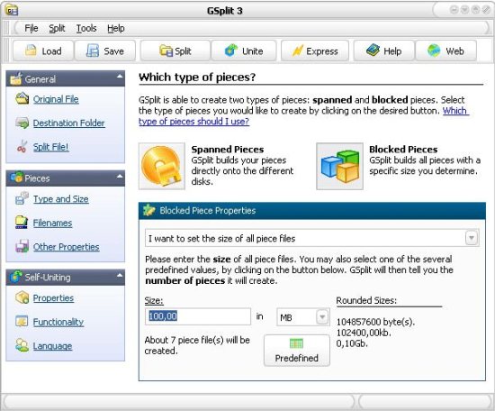 You can split your files in two different ways, disk spanned or blocked. If you want to split files on your available free disk space then you should go for the disk spanned option. GSplit will automatically calculate the free disk space and split files accordingly. If you want to split files and create a set of same sized files, you should try the blocked option. This free file splitter also works as a file joiner, You can use this small freeware to join all the pieces back together. You can also perform fast checks to check CRC32, offset and size to detect corrupted files. It also helps you to make sure that your files can be successfully restored by a user.