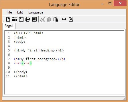 Text formatting can be applied from the toolbars, like with any other word processor. What’s more interesting that we would like to show you is the Language Editor. It can be accessed from the toolbar, it’s designed specifically for code editing.