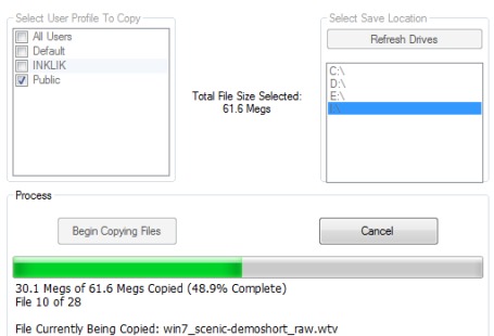 After selecting the user profile and backup drive, you can hit the backup files button. Depending on the selected user profile and files size, backup will be finished.