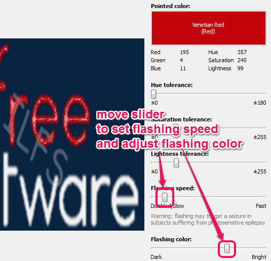 • You can increase/decrease flashing speed while highlighting color area according to your requirement. Flashing color brightness can also be adjusted by you. Simply use the available sliders.