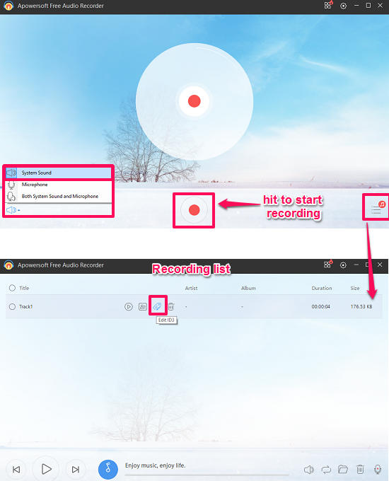Apowersoft Free PC Audio Recorder is a free voice recorder software to record any PC audio. You can record microphone sound, PC sound or both using this freeware, and it automatically saves the recorded file. The unique feature of this software is that it lets you add ID3 tags in your final recorded file. Also, it comes with an intuitive and simple user interface that makes it pretty easy to record any voice using this free voice recorder software.