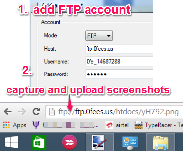 upScreen is a handy tool that lets you upload captured screenshot to your own FTP (File Transfer Protocol) server. When you want to remotely access screenshots from anywhere using your own trusted server, this tool comes in handy. You can capture a specific portion of desktop screen, full screen, or specific windows (say taskbar) using this tool. As soon as the screenshot is captured, it will be sent to your FTP server immediately. URL of the Captured screenshot also opens with your default web browser. Moreover, URL also get copied to clipboard, which you can store for later use.