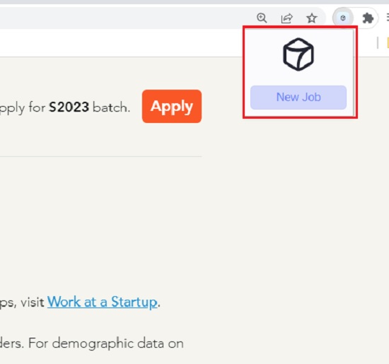 2. Navigate to the website whose data you wish to scrape and launch the Easy Web Scraper extension using the Extensions icon ahead of the Chrome address bar and click on ‘New Job’.