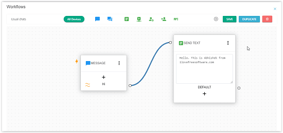 You can create a workflow for the incoming messages and their automatic replies. Just enter the messages you think you will receive. And then write a reply for those messages. Next time, whenever the messages arrive, this tool will reply automatically.
