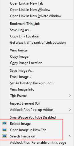 Image Context Menu is a Firefox addon to reload broken images through right click context menu on a web page. The addon is pretty useful, as you don’t have to reload the entire web page because of a broken image. You can easily right click and reload the broken image, saving you the hassle of reloading the whole web page. This addon adds few options to your right click context menu to help you with image related tasks.