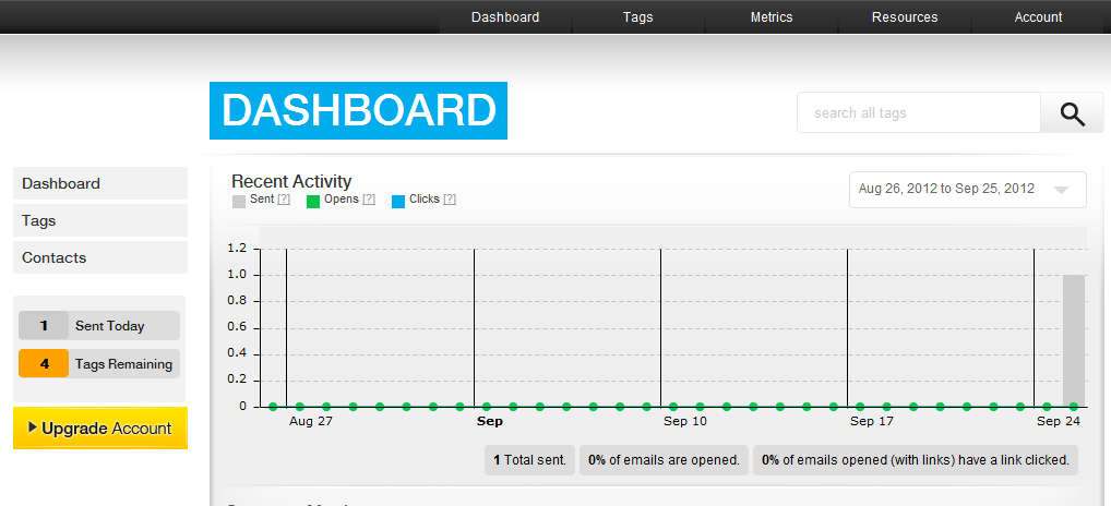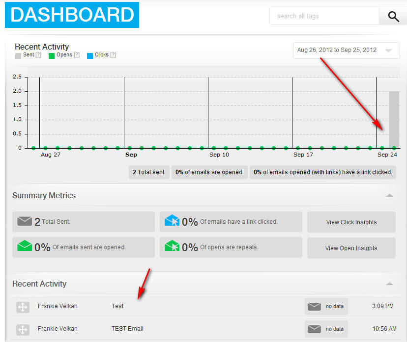 Open up the main website and login to the members area to actually see the email stats. Dashboard will give you a full report on all the emails that you’ve sent. How many of them have actually reached their destination, how many were opened and how many clicks there were on the email links.