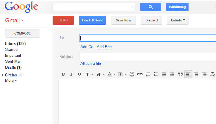 When you install the extension, you should see a new button next to the usual Send, name of the new button is gonna be Track & Send and you need to send your messages using that new button, if you want them tracked with the help of BananaTag.