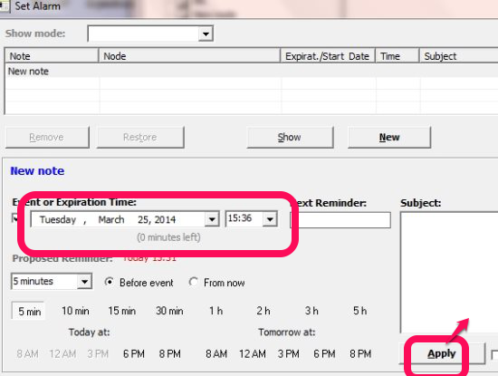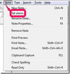 You can use this note taking software as a reminder software as well. This software gives you an option to set alarm with any note. For that, click on “Note” tab and then click on “Set alarm” in the drop down menu.