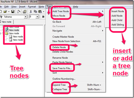 One of the features that I really like in this software is that it lets you easily organize notes in form of a hierarchical tree. You can add various nodes for tree and then add notes under those nodes. This ensures that you can organize notes on same topic together.
