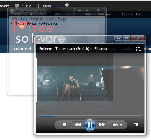 Chaos Crystal is a free software to make a window transparent or completely invisible. Whether you have opened any text editor, Windows Media Player, web browser, or other window, you can set its transparency using this freeware. All you have to do is select an opened window using its interface and move the available slider to adjust the transparency.