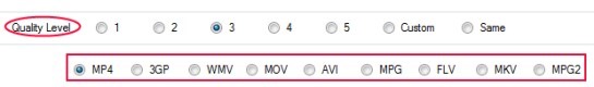 At the bottom part of this video conversion software, you can choose any preset quality level by clicking on radio button present for each level. You can even keep the quality level same as of original file which is a good thing. Likewise you can select any output format by clicking on radio button of desired format. As you could see in the below screenshot, multiple output formats are available to choose.