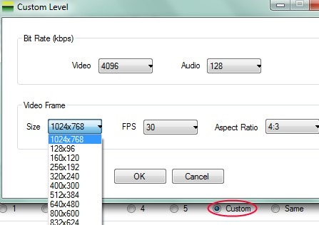 This way you can use any format and can begin the conversion process. More in this, for customizing the quality of output videos, you need to select ‘Custom’ option. A new window will open up like the below screenshot. Here you can maintain the aspect ratio (16:9 or 4:3) for output videos, can adjust the audio & video bitrate (128 kbps, 256 kbps, 2048 kbps, 4096 kbps etc.), frames per second etc.