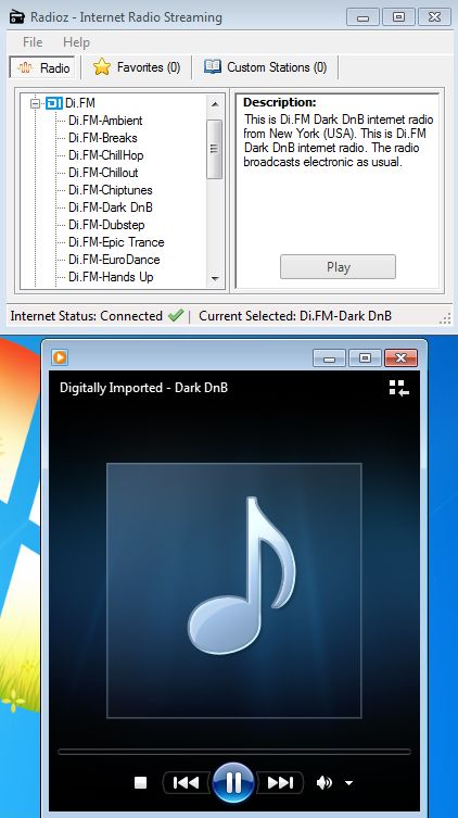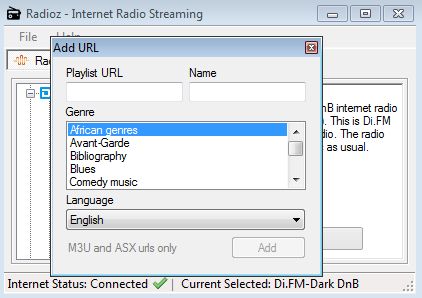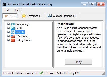 Radioz is a free internet radio manager for Windows. It comes with a built-in list of radio stations from sources like Sky.fm, Digitally Imported and Radionomy, but it will not play them, it’s just a manager. Instead of starting the stream of the selected radio station, when you click Play, Radioz will open it up inside Windows Media Player. It uses an external player in order to stream radio stations.