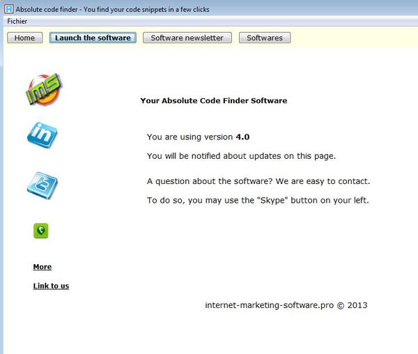 This is sort of like a promotion from where you actually launch the software by clicking on the Launch the software button. Once that you’ve done that, you’re gonna see the actual interface of Absolute Code Finder.