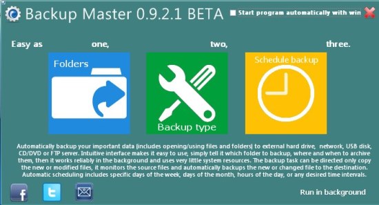 Backup Master is a free backup software that lets you easily create and schedule backup of files and folders on your system. It’s a handy and lightweight software that works in three easy steps and allows you to backup all important files and folders on your system. Backup Master aims at providing simplicity to users and offer ideal solutions for basic data backup.