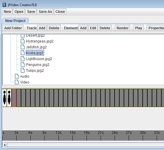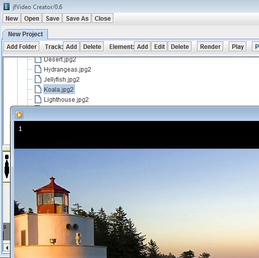 jfVideo Creator is a very simple free video creator, which you can use in order to easily create videos from images, audio, and other video clips. Videos are created by jamming all the required ingredients into a time line, including photo files, video files and audio tracks that you would like to see mixed. Order of each object of the video file that you’re creating can be changed, and when you’re done tweaking everything, simply set the length of the video and you’re done.