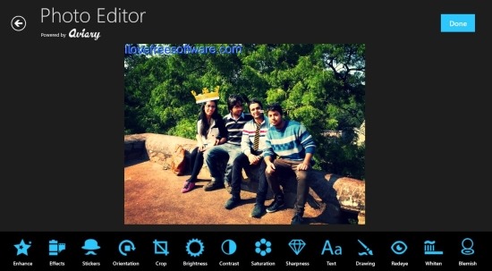 The editing features that this app have are quite huge, this allows you to edit the photo and enhance them according to your needs. You can edit an image according your needs by changing the contrast, saturation, orientation, whiten, sharpness etc. Also you can get all creative with the other features that allows you to enhance the image with effects, adding stickers, adding text, drawing etc. In total if you want a simple, effective photo editor app for Windows 8 that is feature rich then try this app now.