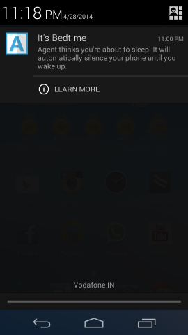 In the below example of sleep agent running, it silenced my phone and also turned off the mobile data (as I selected the disabling of the mobile data in the configure section).
