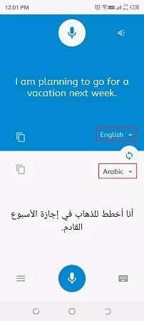 2. Launch the application and observe the two sections on your device screen, one for the source and the other for the target language.