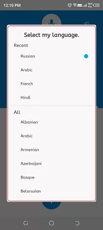 4. Now tap on any one of the microphone buttons depending on the language you wish to speak, record your voice and then tap the animated button to submit the recording.