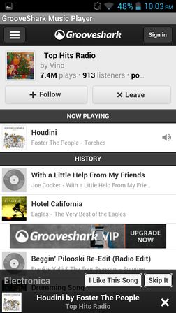 What’s different about GrooveShark Music Player is that it has considerably lesser ads that pop-up, so your overall experience won’t be as ruined like it might be when using Groovershark Mobile or Grooveshark Android Player.