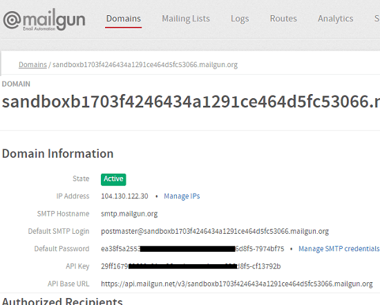 Here you will also have to do some configuration in the DNS settings of your domain to create an email address of your own domain. However if you don’t do that, you can still use the SMTP server using a built-in sandboxed email address. But that will only send emails to authorized recipients.