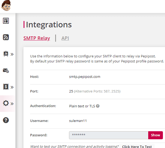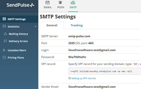 Pepipost is one of the best free bulk email sending service that offers you a free SMTP relay as well. In the free plan, it lets you send up 30,000 emails per month and maximum of 1000 emails per day. After signing up for an account, you can get the SMTP server details and credentials and then configure them in a mass mailing software to get started.