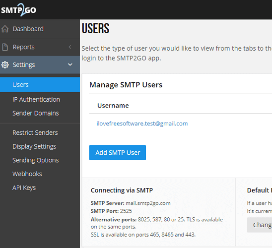 SMTP2GO is another reliable service that offers a free SMTP relay tos end emails. For free, you can use it to send 1000 emails per month. But again, here you will have to create a sender address first to send emails in bulk. For that, you will have to add domain in it that you own and verify it to create email addresses. Once, you verify your email address, you can start sending emails and do whatever you want. It offers you free spam and sent email reports that you can use to analyze the marketing campaigns.